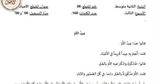 نص عيد الأم للسنة الثانية متوسط الجيل الثاني