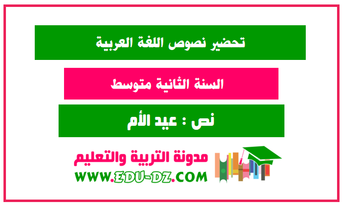 تحضير نص عيد الام للسنة الثانية متوسط الجيل الثاني
