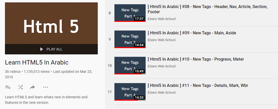 9 دورات باللغة العربية علي اليوتيوب لتتعلم لغة Html